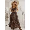 Damska sukienka maxi w panterkę/czarno/pomarańczową wzorzystą lycrę z pojedynczego jerseyu z elastycznym pasem dwurzędowy kołnierzyk