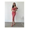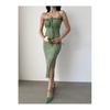 Letnia wzorzysta sukienka damska z kołnierzykiem, sznurowanym paskiem i rozcięciem