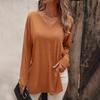 HNXC Moda damska Casual Letnie bluzki i koszule w jednolitym kolorze z nadrukiem, długim rękawem i dekoltem w kształcie litery V