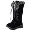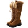 Zimowe ciepłe futrzane buty Kobieta Odkryte buty śniegowe Damskie sznurowadła Kozaki do kolan Buty damskie
