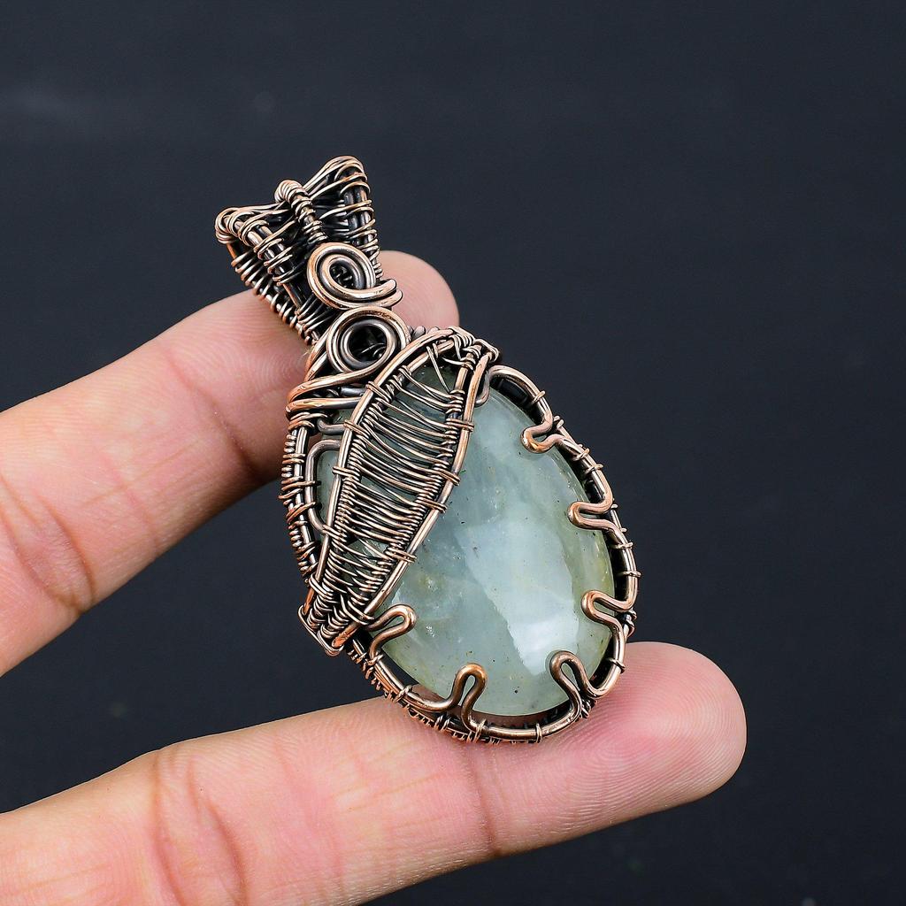 Akwamaryn Kamień Szlachetny Owinięty Czystym Miedzianym Drutem Ręcznie Robiony Wisiorek Biżuteria na Prezent Noworoczny