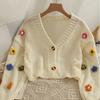 Kawaii sweter w kwiaty sweter damski Harajuku śliczny trójwymiarowy dekoracyjny sweter z długim rękawem Y2k przycięty sweter z dzianiny
