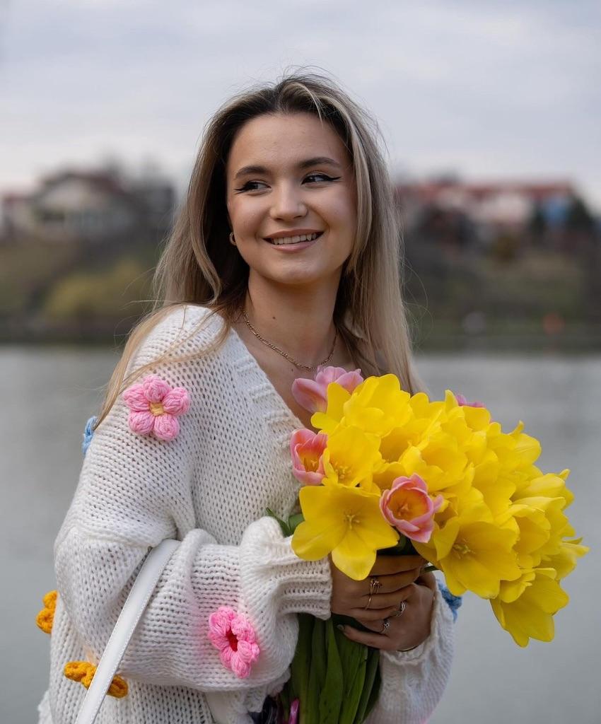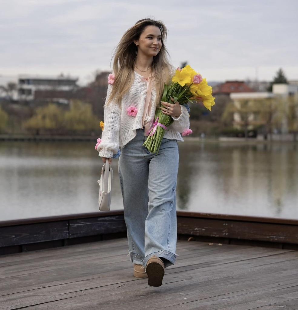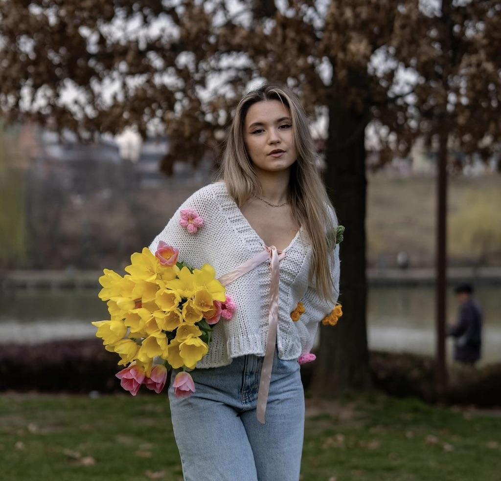 Dzianinowy kardigan 🧶 Wzięłam rozmiar M, noszę S, żeby pasować na szerszą. Myślę, że jest szyty ręcznie i jest bardzo dobrze wykonany 😊 Jest bardzo piękny. Od jakiegoś czasu szukałam takiego kardiganu z popcornem 3D. Nie ma guzików, jest rozpinana, ale przewiązałam ją tasiemką, żeby móc ją nosić jak bluzkę 🌸