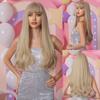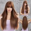 LOUIS FERRE czekoladowy brąz z blond refleksami włosy syntetyczne długie proste naturalne peruki z grzywką damska peruka z włókna Cosplay