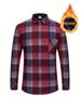 Ciepła koszula w swobodną kratę dla mężczyzn z długim rękawem i kieszenią na piersi, męska plus gruba polarowa koszula zapinana na guziki