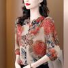 Kwiatowa Koszula Szyfonowa Top Damski Wiosna/Lato Nadruk Szykowna Słodka Codzienna Lampion Półrękaw Bluzka Blusas