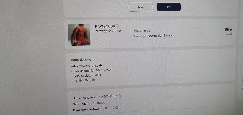 zamówiłem kąpielówki xxl cena 58 zł a dostałem stringi rozmiar l prosze o zamiane