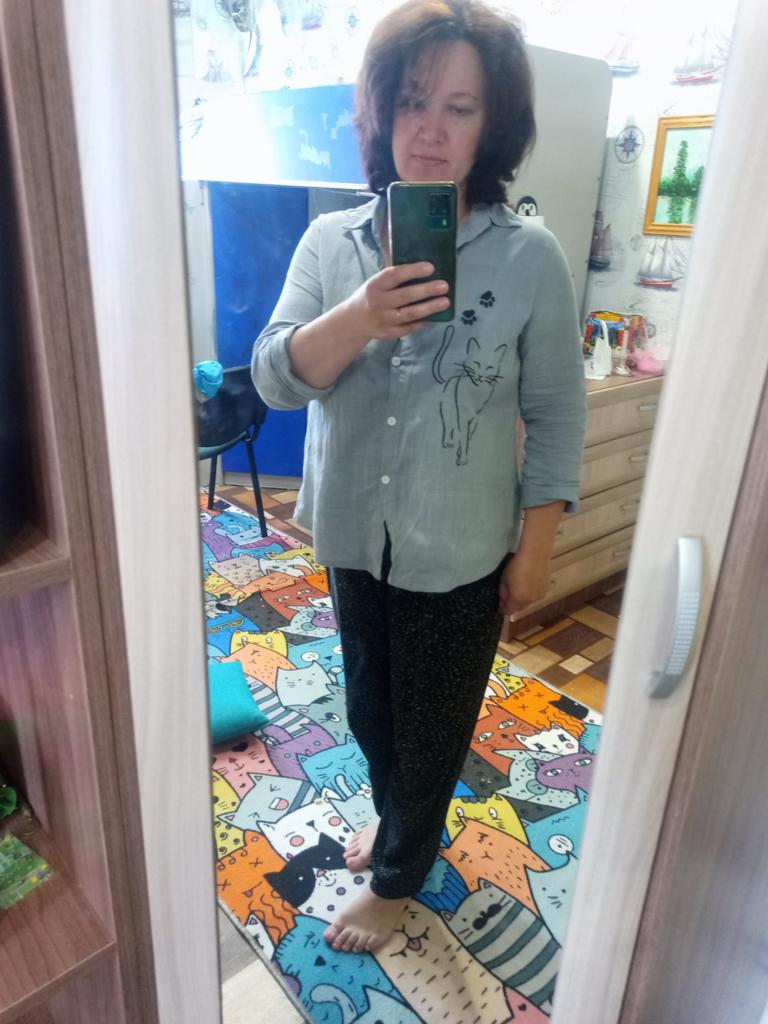 Sama koszula jest o 54 za duża nawet po praniu, wszystko wydaje się być w porządku, ale jakoś nie pasuje, lub przy wejściu unosi się, tył od łopatek jest z tyłu rozszerzony, nie da się złożyć 🤷 ♀️