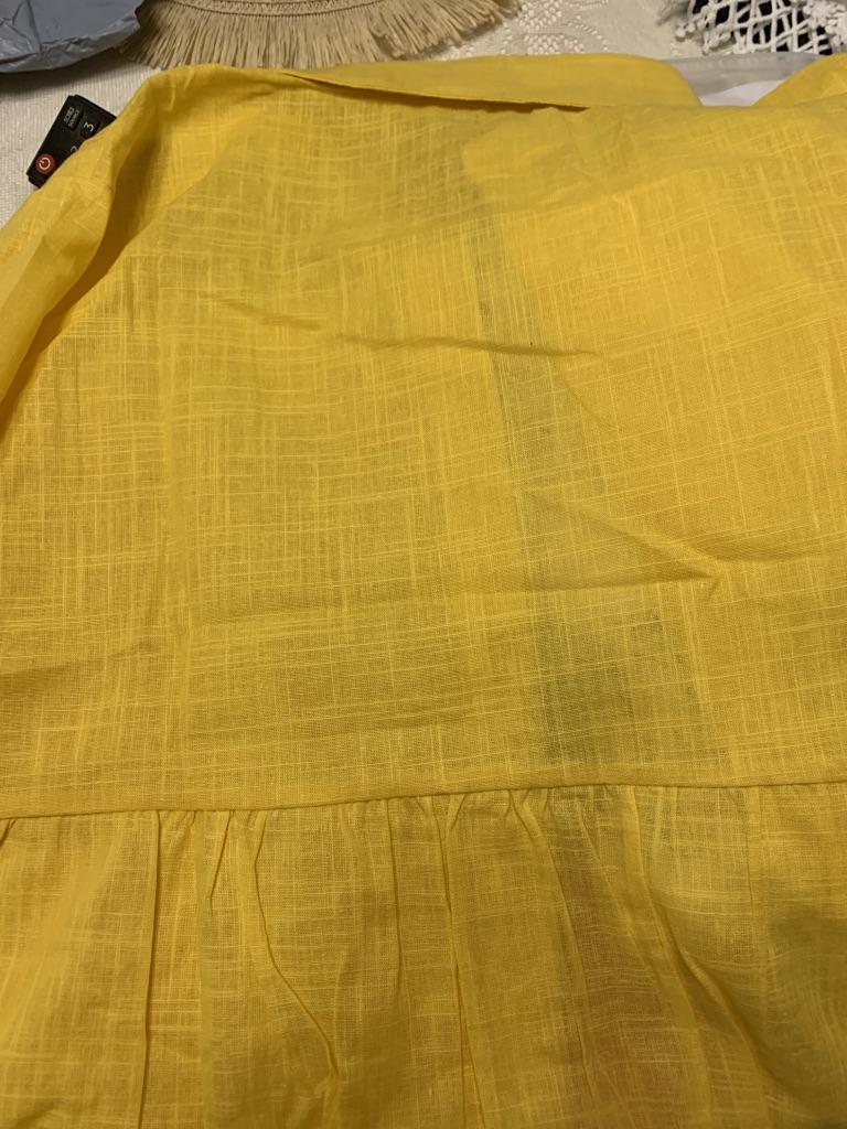 Nie podobało mi się, jak na mnie leży - Być może z powodu żółtego koloru... Szwy są równe, guziki na miejscu). Na rozmiar góry 48-50 - pasowało dobrze.