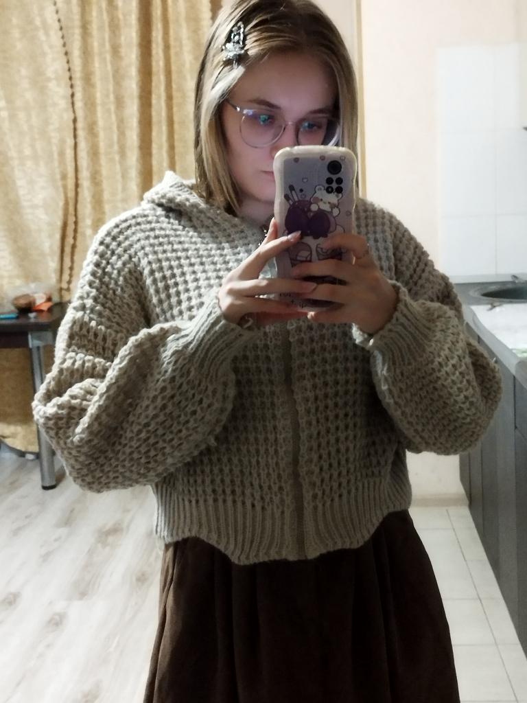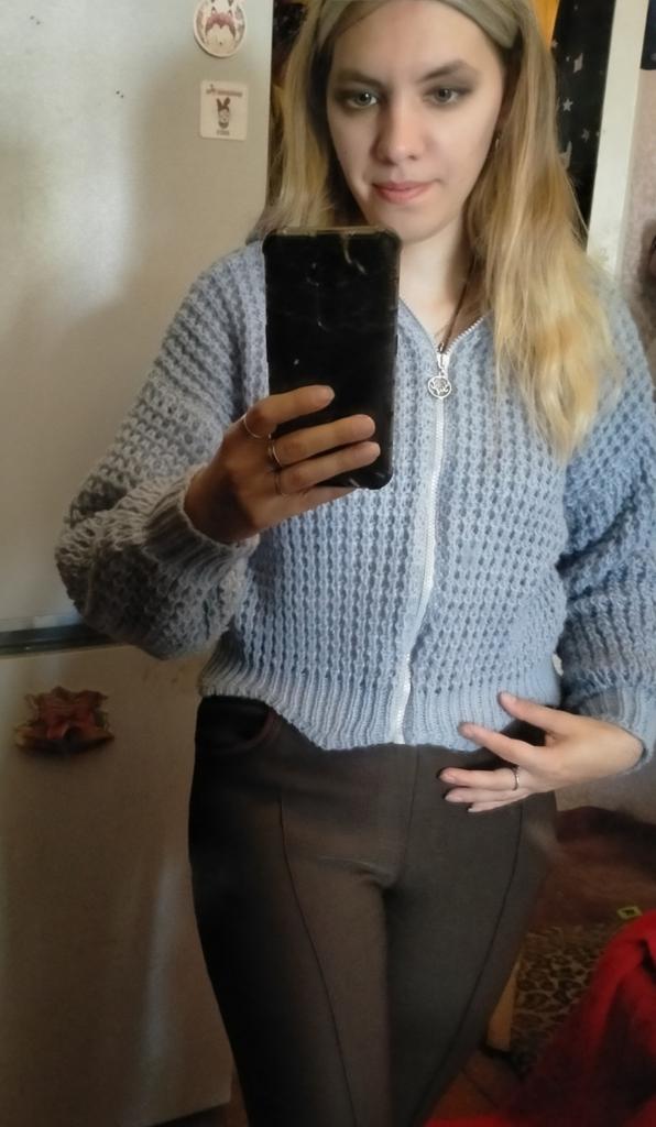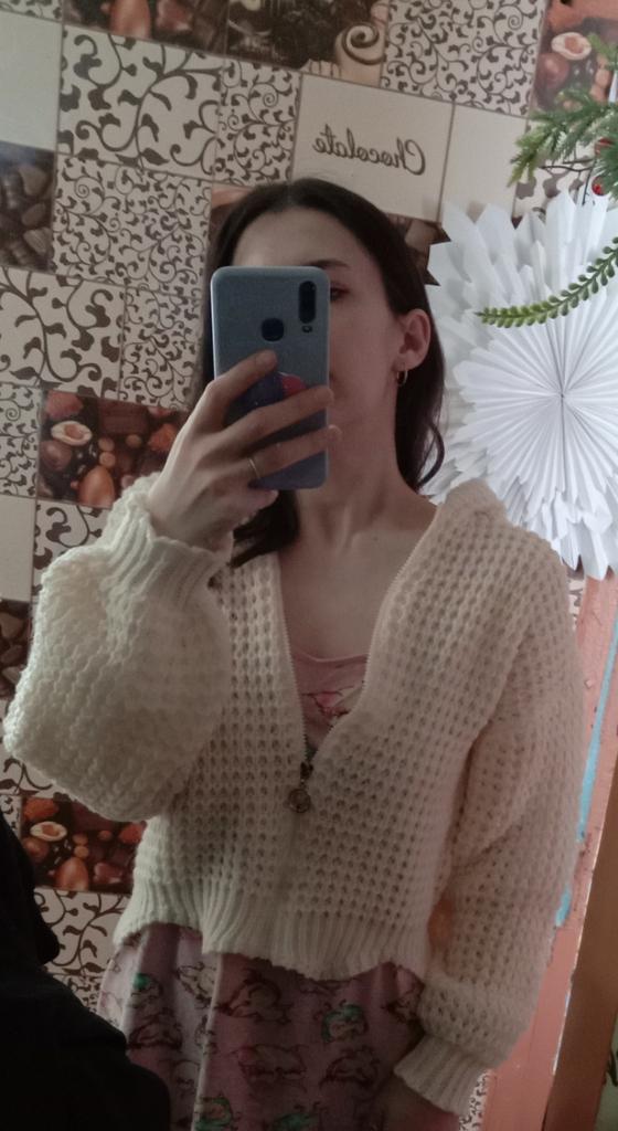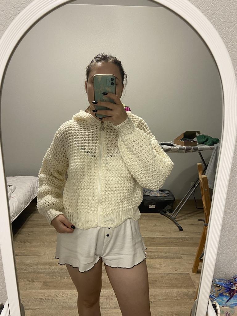 Niezła, ciepła kurtka z dzianiny. Bardzo ciekawy zabieg na dole. Rozmiar uniwersalny, świetnie leży. Będzie dobry na wieczorne spacery.