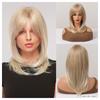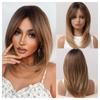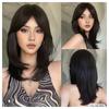 Długie czarne warstwowe peruki syntetyczne z grzywką Karmelowo-brązowa peruka z prostymi włosami Blond podkreśla Włókno termoodporne Kostium do użytku codziennego