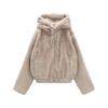 Kobiety 2023 nowych moda kurtka z kapturem ze sztucznego futra płaszcz Vintage z długim rękawem na zamek błyskawiczny damska odzież wierzchnia szykowny podkoszulek