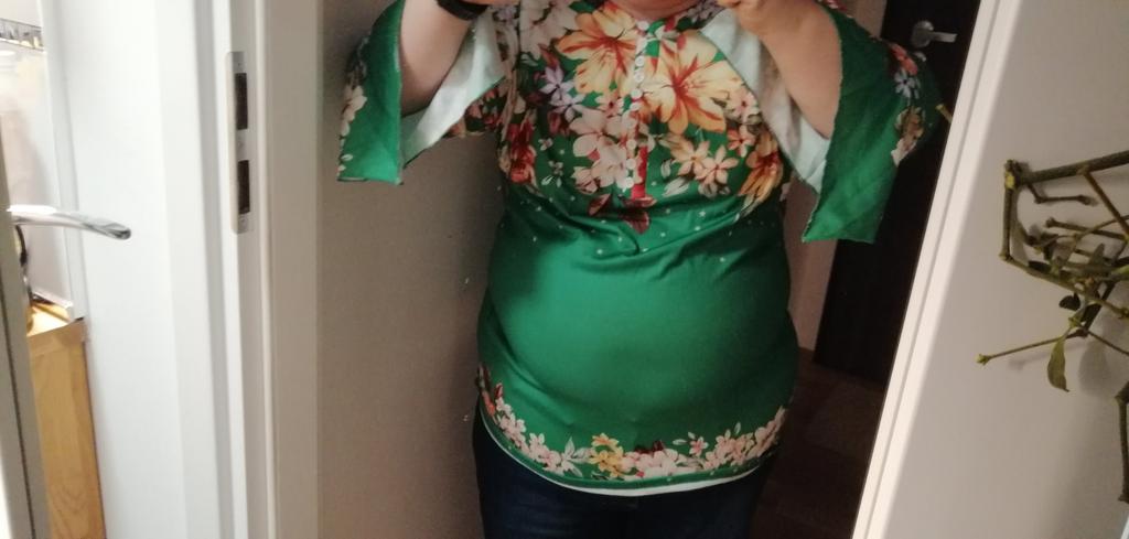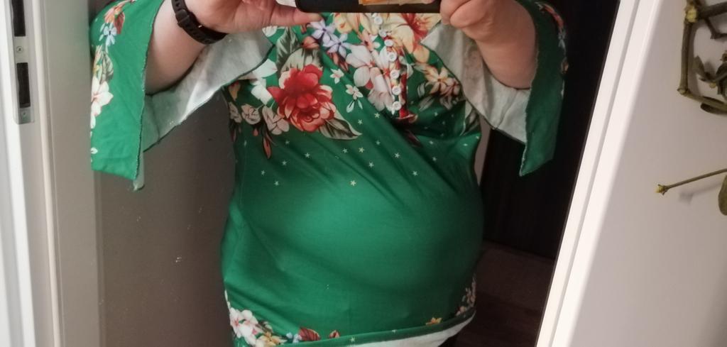 Damska wiosna jesień dekolt w serek guziki bluzka z półplisą 3/4 rękawy luźny brzeg 3D kwiatowy nadruk pulowerowy T-Shirt top Streetwear