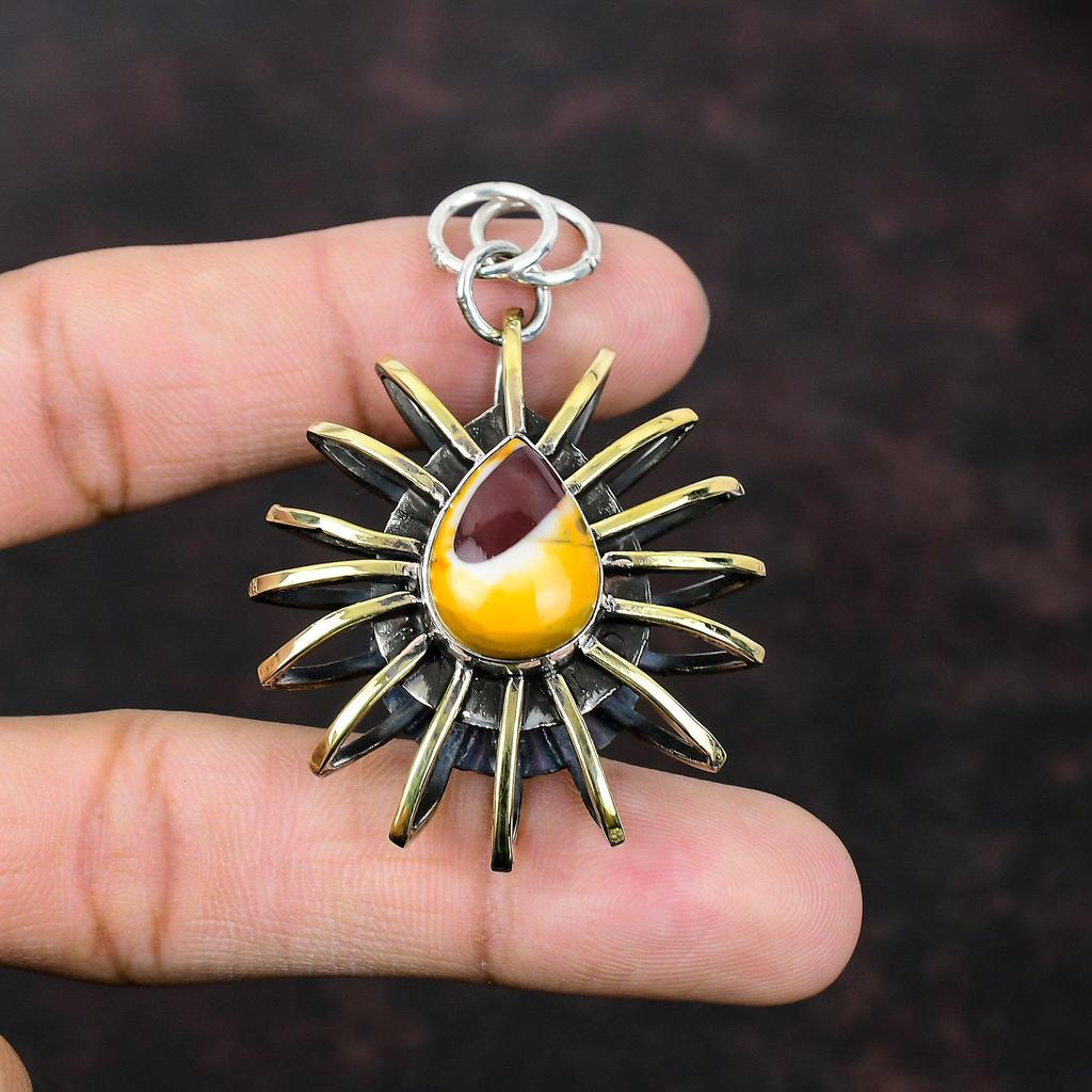 Wisiorek z mokaitu Srebro próby 925 Wisiorek z kamieniem szlachetnym Ręcznie robiona biżuteria Wisiorek platerowany 18-karatowym złotem Biżuteria w klatce Prezent dla matki Wisiorek od projektanta