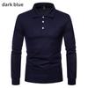 Jesienno-zimowa męska koszulka polo Modna jednokolorowa koszulka polo Slim Fit Casual z długim rękawem