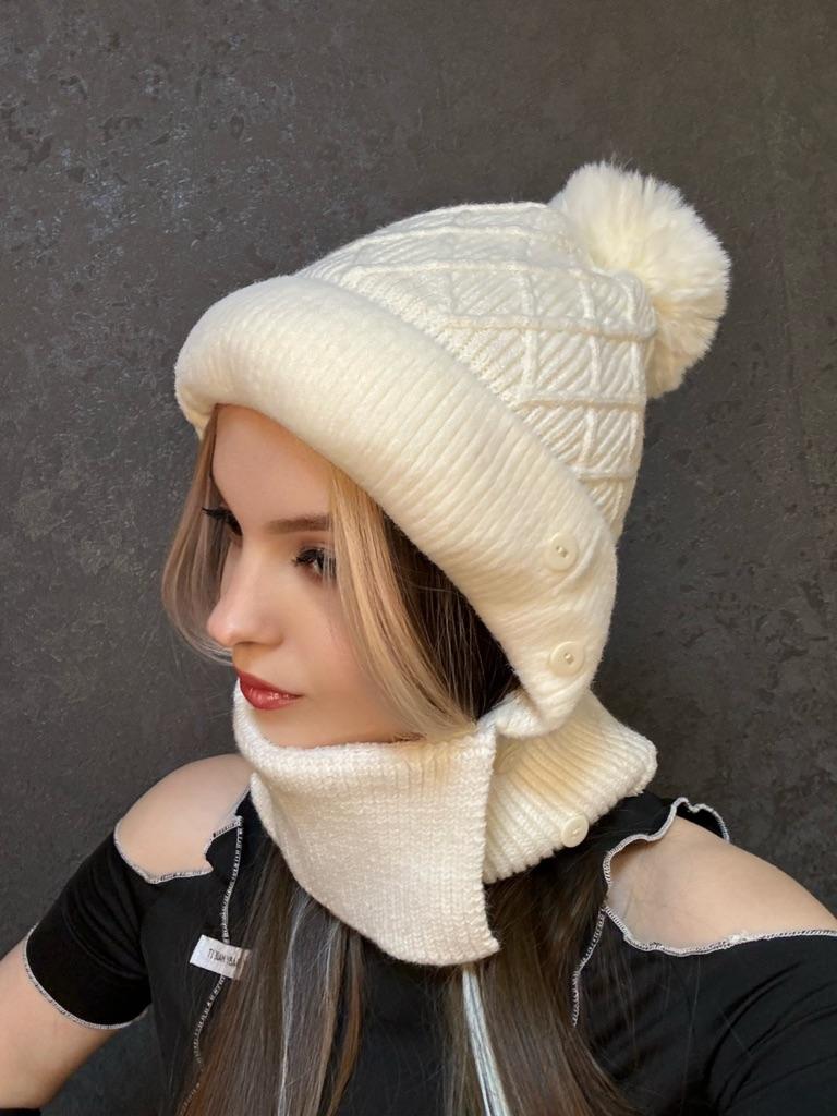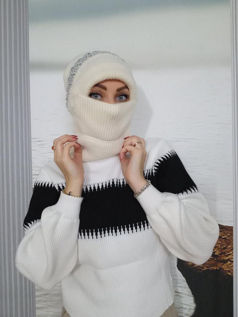 Damski ciepły, jesienno-zimowy, odporny na zimno pluszowy, zagęszczony dekolt, jednoczęściowy pokrowiec ochronny na uszy, czapka z dzianiny