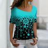 Letnia koszulka z nieregularnym dekoltem i krótkim rękawem, damska, z kwiatowym nadrukiem, na co dzień, t-shirty