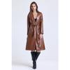 Damski skórzany trencz z podwójną podszewką i paskiem, z podwójnym kołnierzem