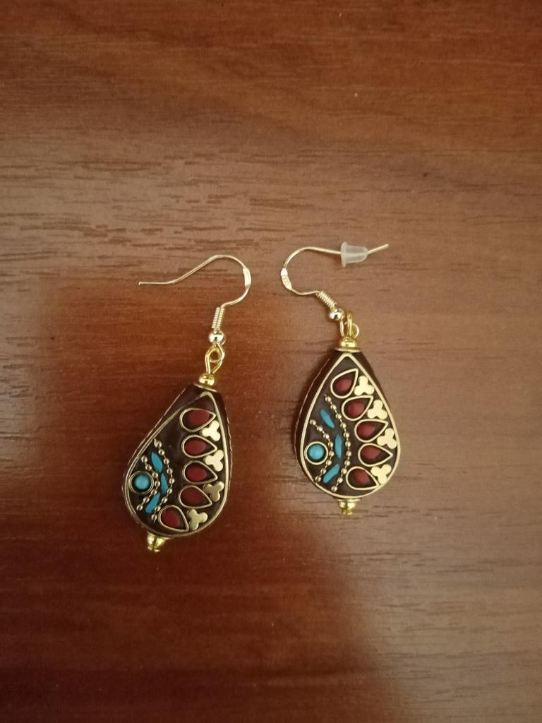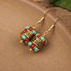 Vintage Nepal inkrustowane kolczyki w stylu egzotycznym z prostym, ręcznie robionym wzorem Etniczne kolczyki w stylu tybetańskim Biżuteria Prezent