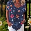 T koszula damska drukuj kot dziewczęca koszulka moda letnia koszulka z krótkim rękawem, dekolt w serek, na co dzień luźny top ponadgabarytowa damska koszula Streetwear