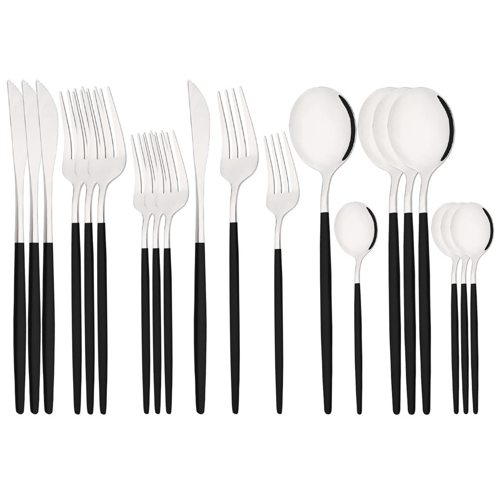 20 sztuk zachodnie czarne srebrne sztućce zestaw nóż widelec deserowy łyżeczka do herbaty zastawa stołowa ze stali nierdzewnej zestaw Party zestaw kuchenny