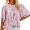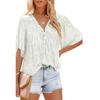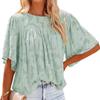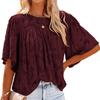 Odzież damska Dekolt w serek Letnia bluzka szyfonowa Jednolita Rękaw trąbkowy Koronkowa wycinanka Top