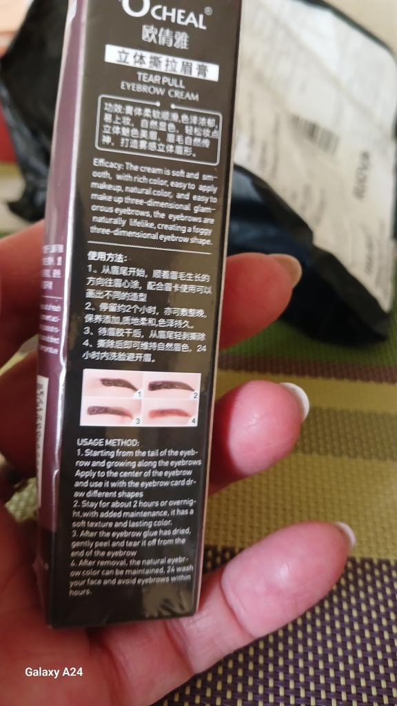 Nie jest tak łatwo zastosować, jeśli chcesz mieć konkretny kształt. Użyłem małego pędzelka. Jakość: doskonała! Zrobiłam już brwi 3 dni temu i nadal mam ten sam kolor!