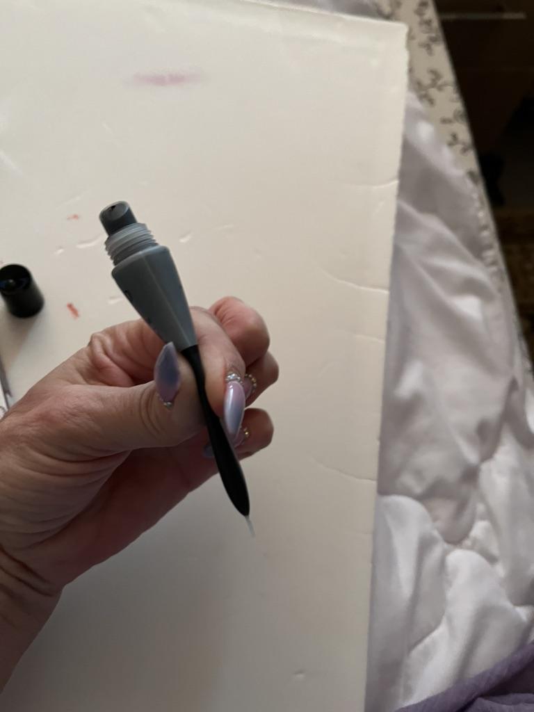 Do rysowania znalazłam pędzelek, nałożyłam, poczekałam około 40 minut, zdjęłam łatwo, pozostał ledwo zauważalny ślad, chyba ok, no i jaskrawy ślad wyglądałby wulgarnie.