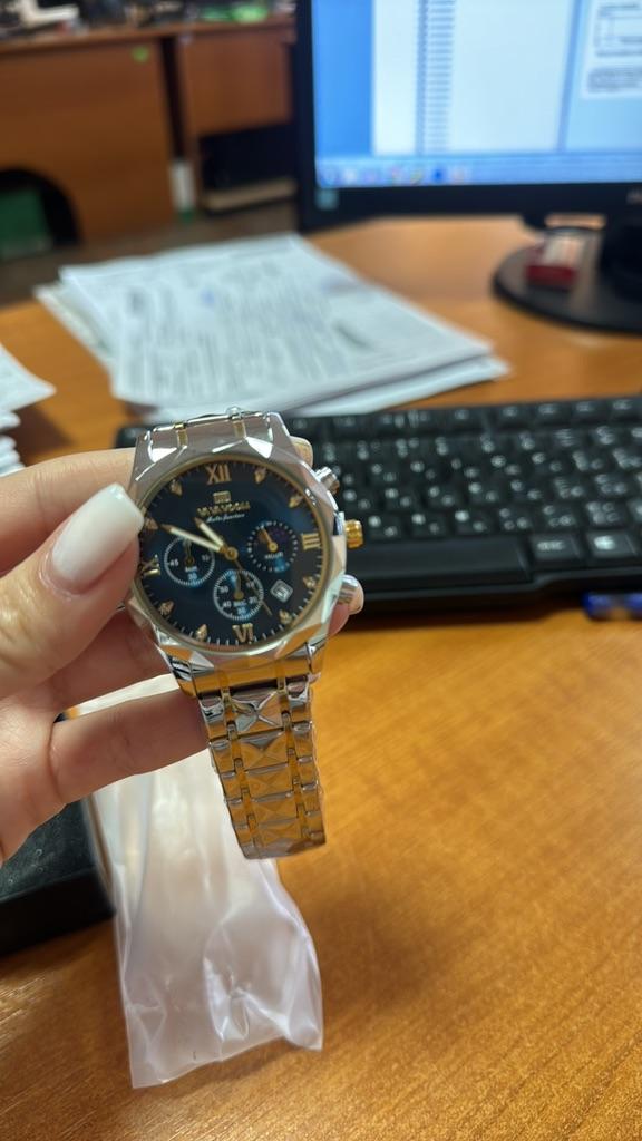 Zegarek jest wysokiej jakości, piękny. Była długa bransoletka. Pasował do zegarmistrza. Pokazuje godziny w odwrotnej kolejności. Małe strzałki również działają. Strzałki świecą w nocy.