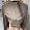 Jesień Y2K T-Shirt moda zimowa koszulka z długim rękawem ciepły top casualowe w stylu Streetwear jednolita koszula z krótkim rękawem obcisłe ubrania Blusas 29770