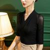 T-shirt z siateczką z dekoltem w kształcie litery V, damski taniec latynoski, z odsłoniętymi ramionami, z długim rękawem, top treningowy, do tańca, bluzka, wiosna, jesień, nowa bluzka w jednolitym kolorze