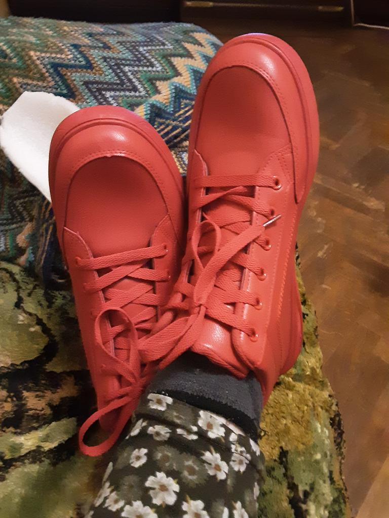 Cena odpowiada jakości, kolor nie jest jaskrawo czerwony, rozmiar stopy to 24 cm, kupiłem 24,5 cm, tj. 39 - Czuję się komfortowo.
