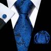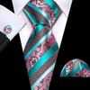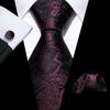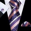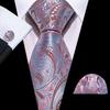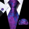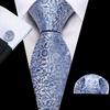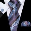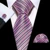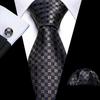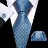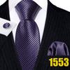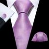 Barry.Wang Zestaw Krawat Poszetka Spinki do Mankietów Jasnofioletowy Szary Niebieski Krata Kwadraty Żakardowo Tkany Ślub