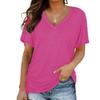 Letnie topy z dekoltem w kształcie litery V, luźny top, jednokolorowy, swobodny T-shirt z krótkim rękawem. Odzież damska