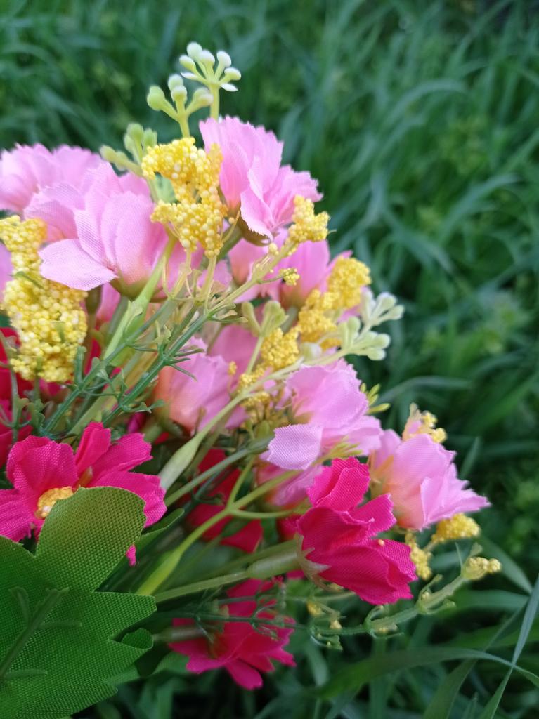 Sztuczne kwiaty. 💐 Ładny, jasny bukiet stokrotek.🌸🏵️🌸 Tak jest w przypadku, gdy bukiet wygląda na żywo o wiele lepiej niż na zdjęciu promocyjnym 🥰. Sprzedawca ma sześć opcji - wybrałam bukiet różowo-czerwony.❤️ Różowe i czerwone stokrotki dobrze komponują się z małymi żółtymi gałązkami przypominającymi mimozę.. Materiał: plastik i tkanina. Łodygi wykonane są z plastiku, a kwiaty i liście z materiału.. Całkowita długość bukietu wynosi około 33 cm.. Zamówiłam kwiaty na sesję zdjęciową, ale taki bukiet równie dobrze będzie się prezentował we wnętrzu.. Podobał mi się bukiet 🥰. Załączam wystarczającą ilość zdjęć, aby ułatwić Wam podjęcie decyzji 📸 😘. Jeśli informacja była przydatna, proszę o polubienie 💗❤️💗. Towar otrzymałem w ciągu 21 dni w jednej paczce łączonej 📦. Zamówiłam kilka produktów jednocześnie w sklepie "Bluelans flower decoration", sprzedawca zapakował wszystko w jedną paczkę, co jest bardzo wygodne. Trasa była śledzona w całości. O przybyciu na miejsce dostawy powiadomiono sms-em 📲 Opakowanie: zwykła paczka pocztowa i opakowanie indywidualne. Wszystko dotarło całe i zdrowe ☺️ Życzę wszystkim udanych zakupów i szybkich dostaw 🛍️☺️🚀🌸 Komfort i dobre samopoczucie dla Was i Waszych rodzin 🏡❤️