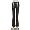 Punk Style Bandaż Proste Spodnie Czarne PU Skóra Slim Fit Wysoka Talia Ołówkowe Spodnie Harajuku Rocznika Kobiety