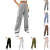 Damskie podstawowe spodnie z wieloma kieszeniami i elastycznym pasem, sportowe, proste spodnie ochronne