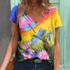 Damska letnia koszulka moda 3D nadruk z rośliną 3XL rozmiar Streetwear damska Casual dekolt w serek z krótkim rękawem luźne topy T Shirt 2022