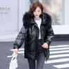 Damska kurtka płaszcz zimowy futrzany kołnierz z kapturem błyszczący płaszcz damski bawełniany ocieplany parka wodoodporna odzież wierzchnia