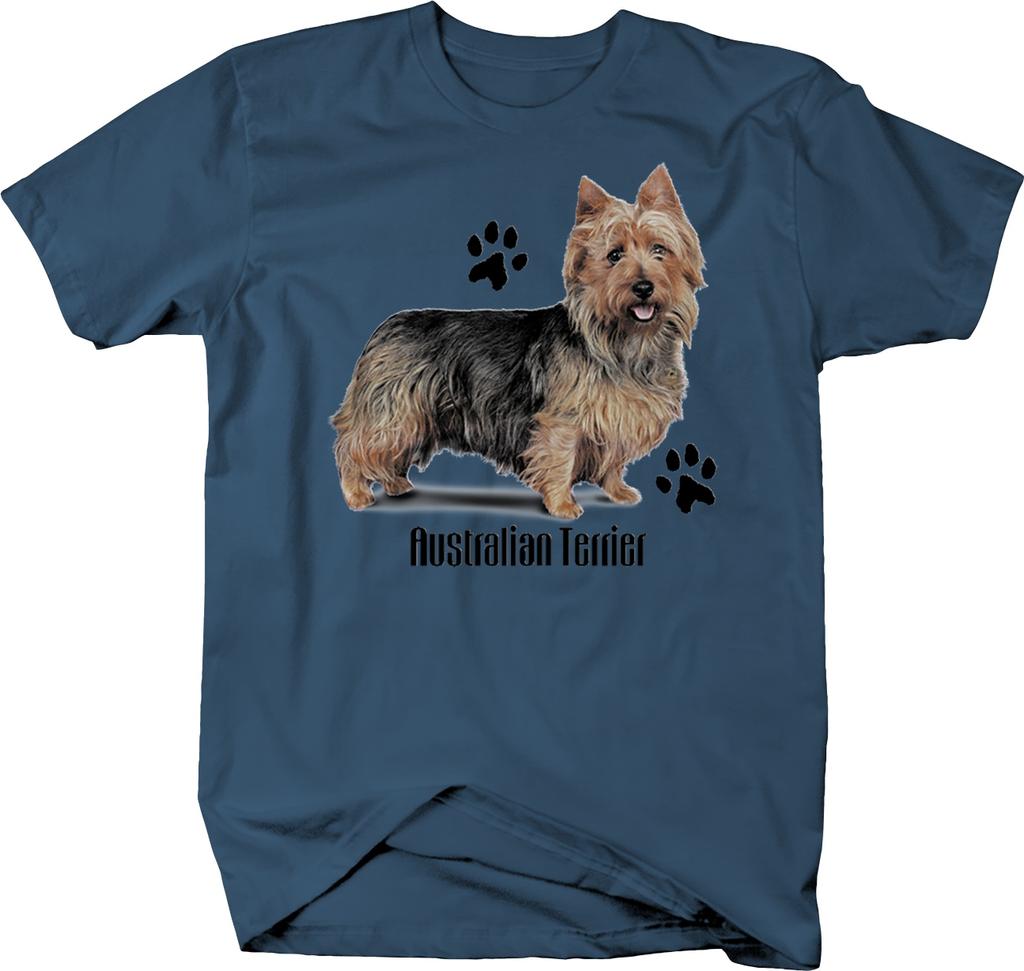 Uroczy pies rasy terier australijski stojący z odciskami łap niestandardowe koszulki unisex