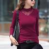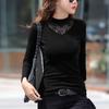 Odzież damska Jesień Zima Aksamitny dół Koszula Koronkowy Patchwork Slim Fit Ciepły top Damski Solidny modny topy z długim rękawem