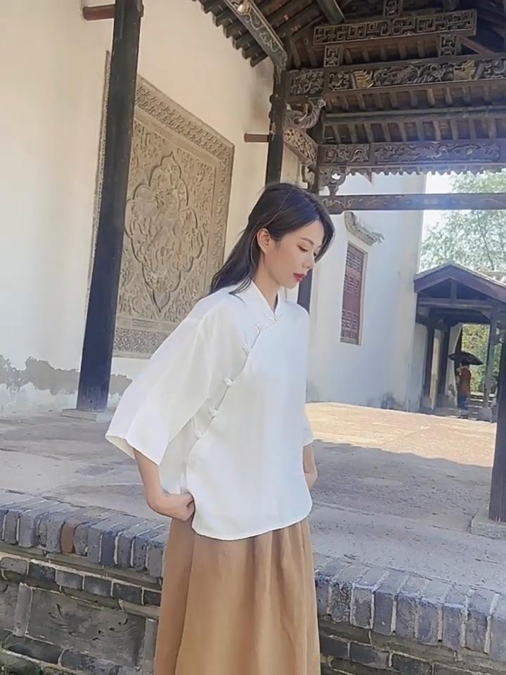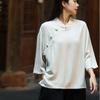Johnature Jesienna kobieta, jednorzędowa, lniana koszula w stylu vintage z klamrą, modny kołnierzyk z długimi rękawami, luźna koszula na co dzień