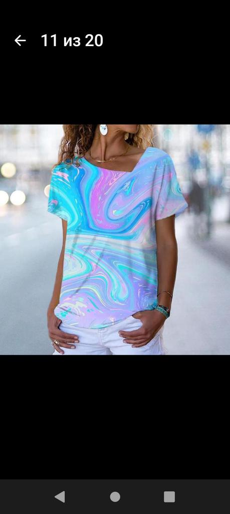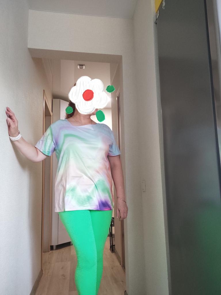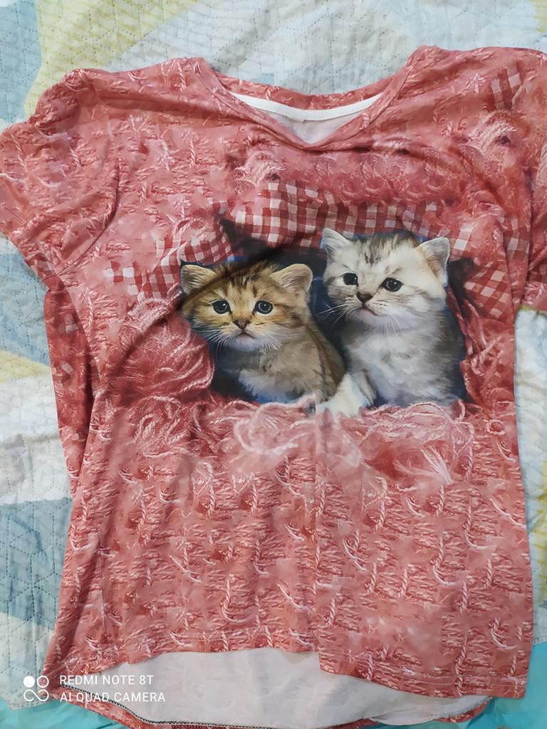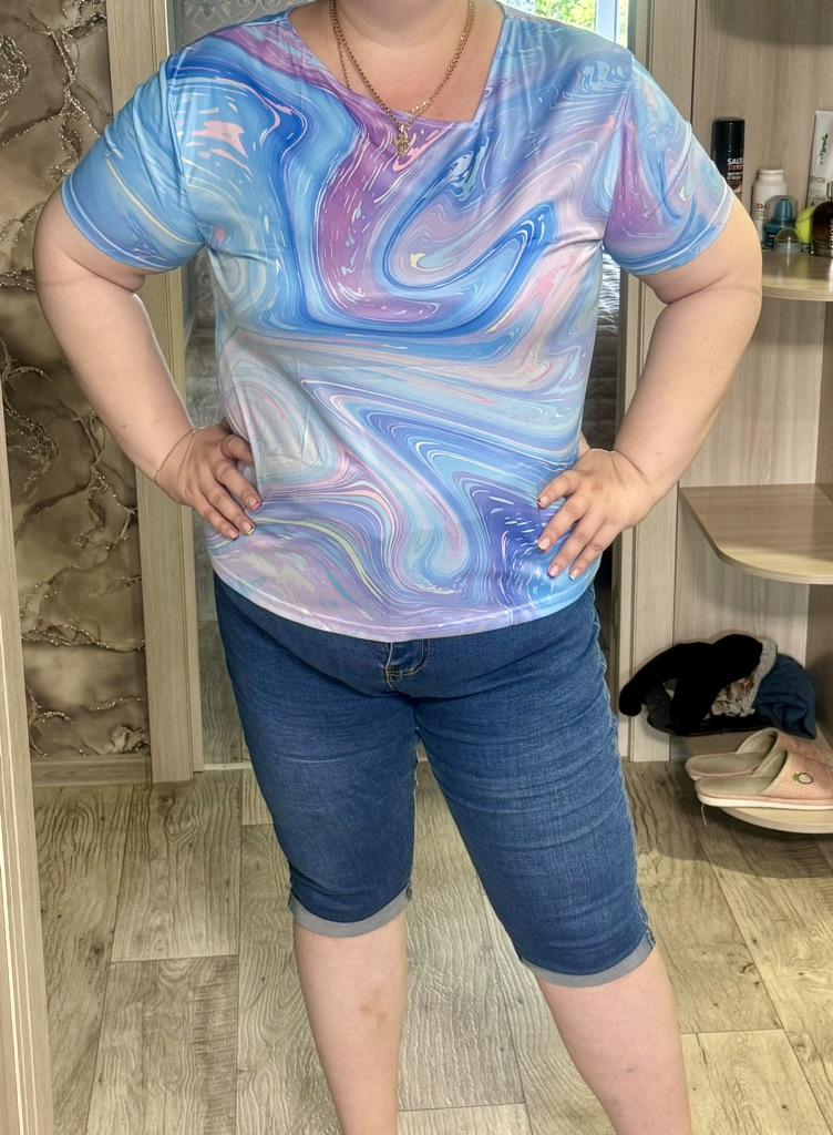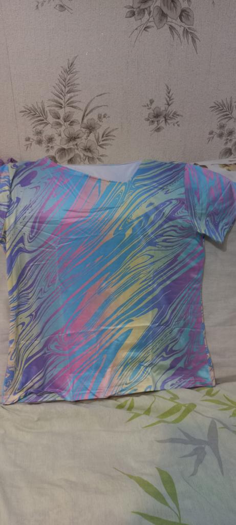Koszulka jest za duża nawet po praniu. Na zdjęciu koszulka jest jaśniejsza. Myślę, że ten produkt jest odpowiedni dla wysokich dziewczyn do rozmiaru 48.