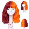 Krótkie kręcone niebieskie Bobo syntetyczne peruki Cosplay dla kobiet pomarańczowe czerwone zielone naturalne włosy żaroodporne z grzywką dla dziewczynki