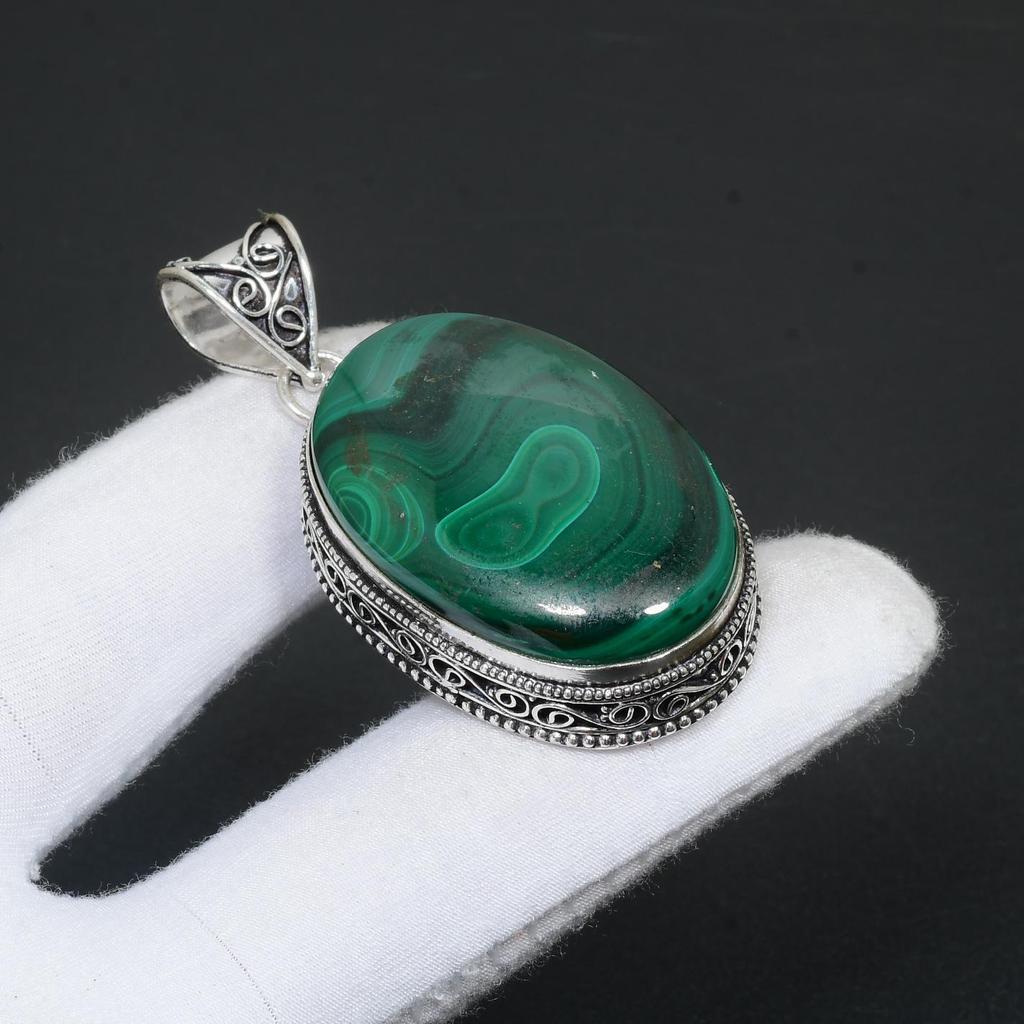 🌟 Naturalny malachit kamień szlachetny ręcznie robiony wisiorek ze srebra próby 925 Naturalny malachit wisiorek ręcznie robiony wisiorek Prezenty dla kobiet 🌟