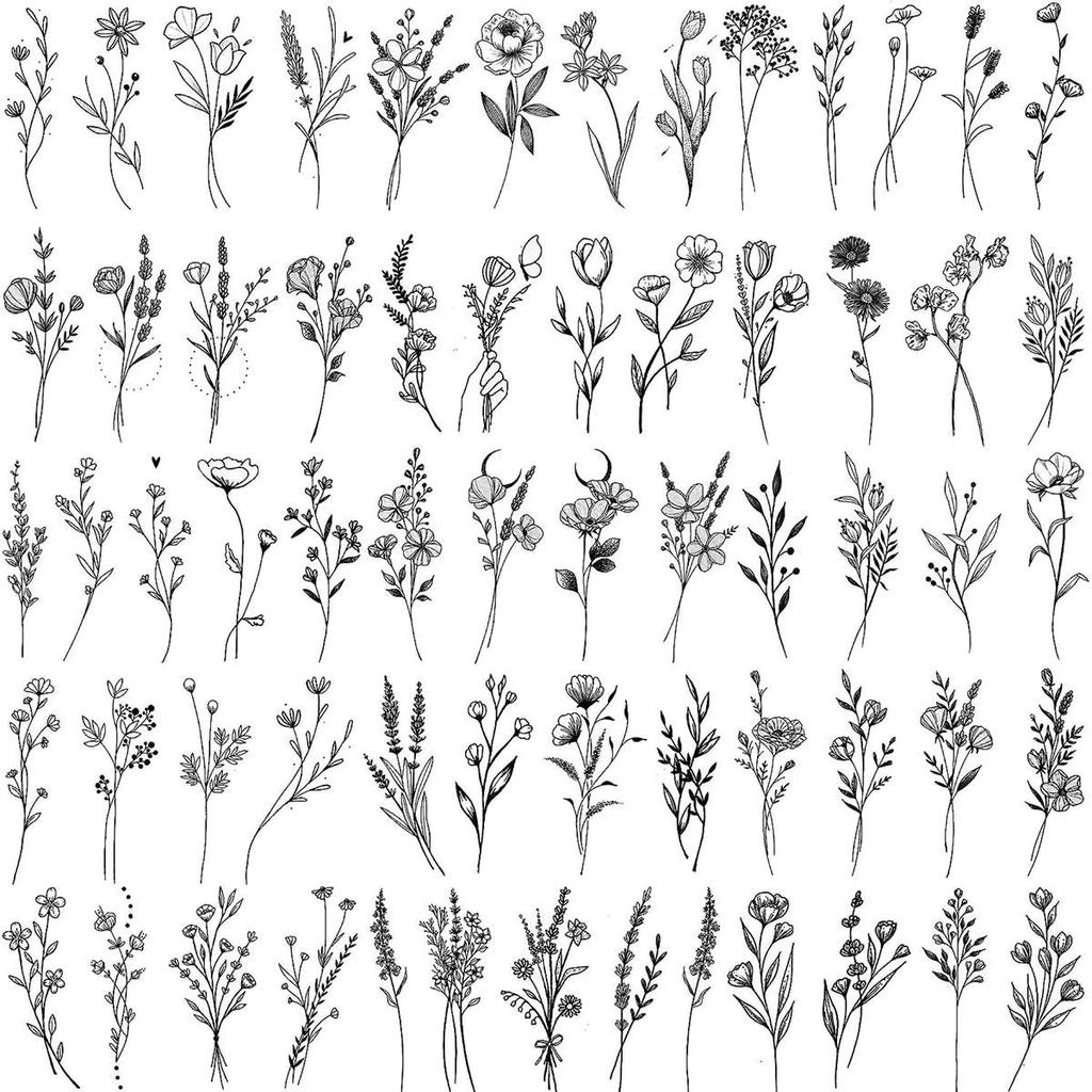 15 arkuszy mała gałąź czarny kwiat tymczasowe tatuaże dla kobiet dziewczyna kwiatowy bukiet mały tatuaż tymczasowe fałszywe lawendowe tatuaże z groszkiem