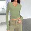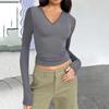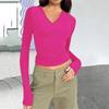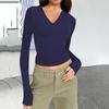 2023 moda szczupła prosta koszulka z długim rękawem Casual jesienno-zimowa dekolt w serek podstawowa koszulka topy kobiety kobiety seksowna krótka koszulka 30427