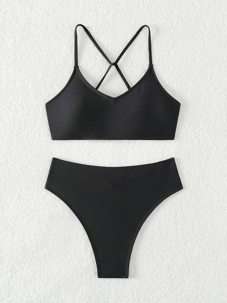 Damski strój kąpielowy Czarny krzyżowy wiązanie na plecach Wysoka talia Hollow Seksowny strój kąpielowy bikini dla kobiet Kostiumy kąpielowe Kostiumy kąpielowe