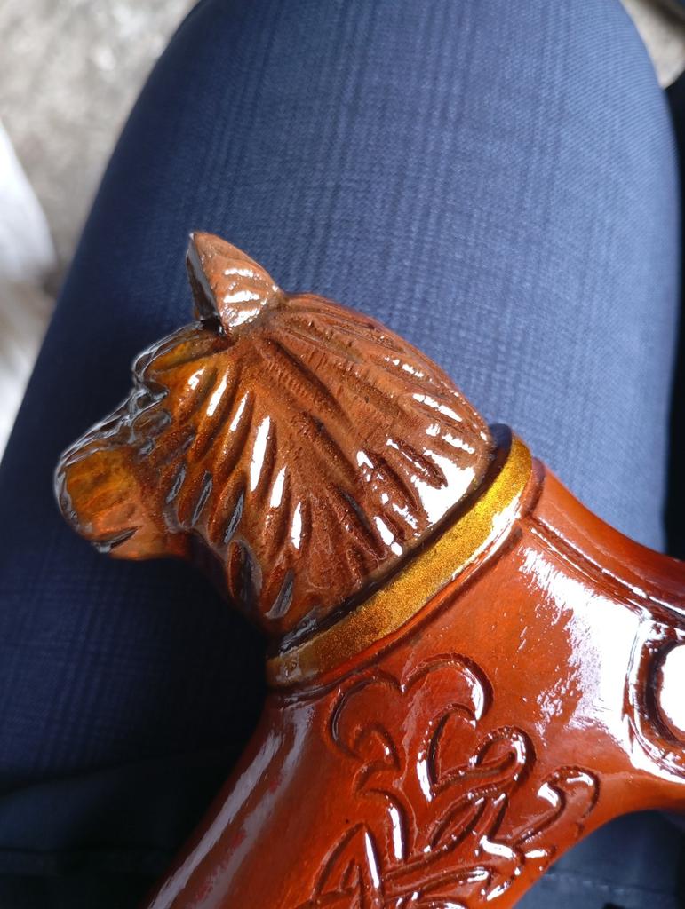 Ręcznie robiona drewniana laska z rączką dla kota - wzór w stylu vintage