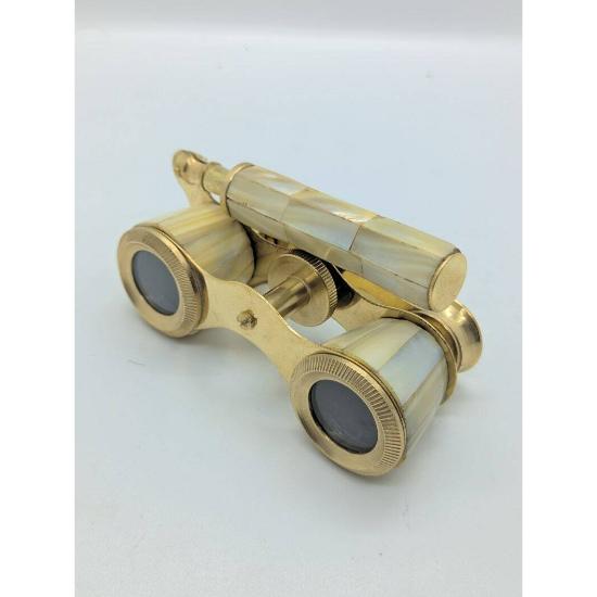 Antyczna mosiężna lornetka operowa z masy perłowej i uchwytem, lornetka żeglarska na prezent